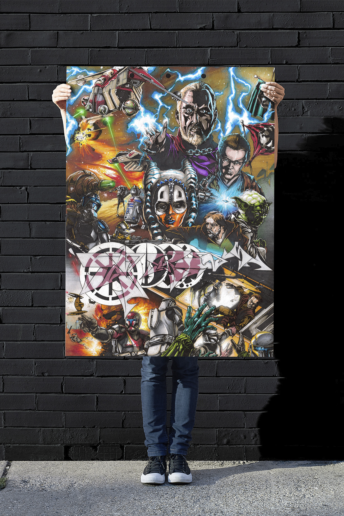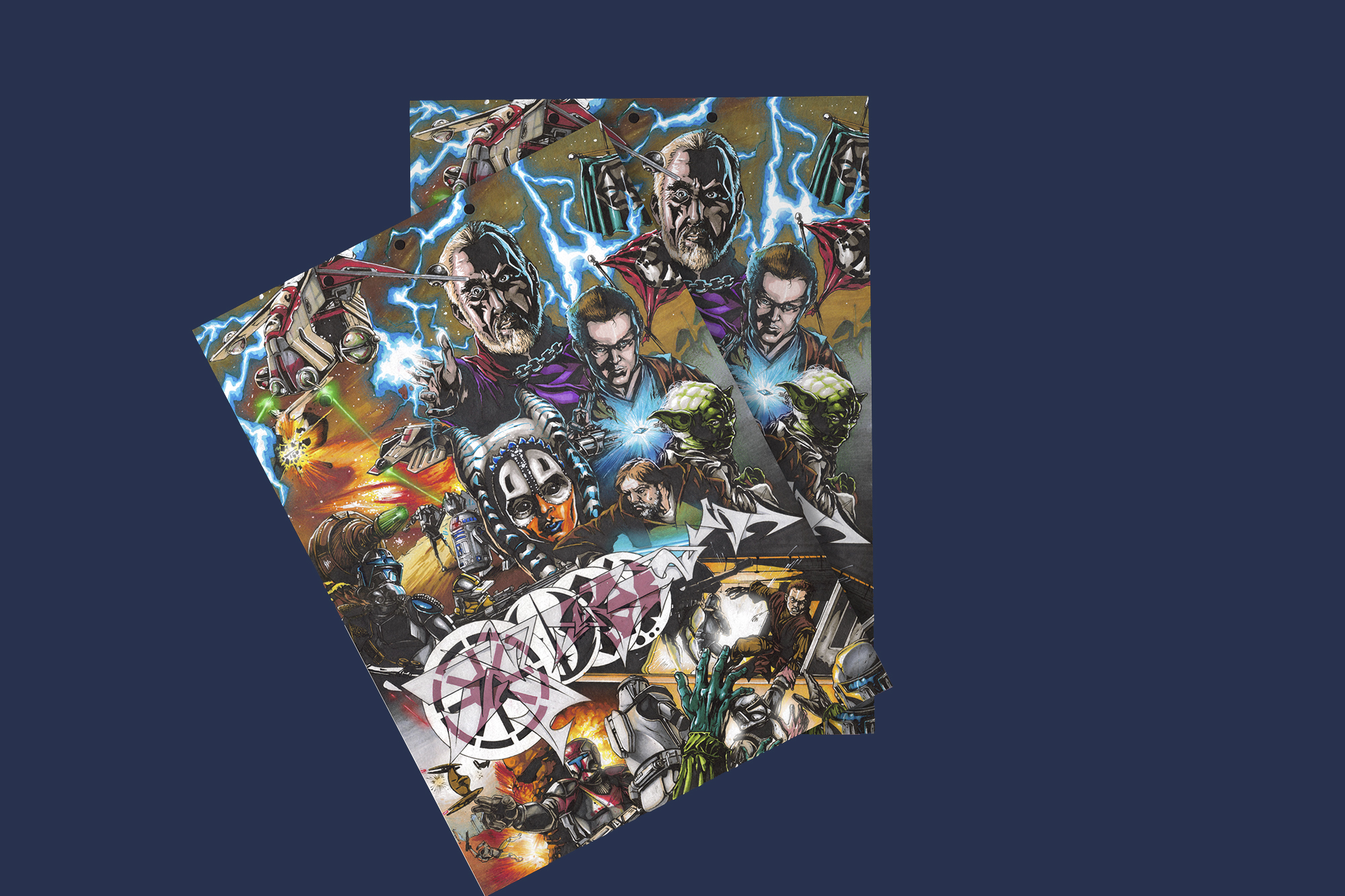 Alcohol markers, acrylic, acrylic markers, matte varnish.